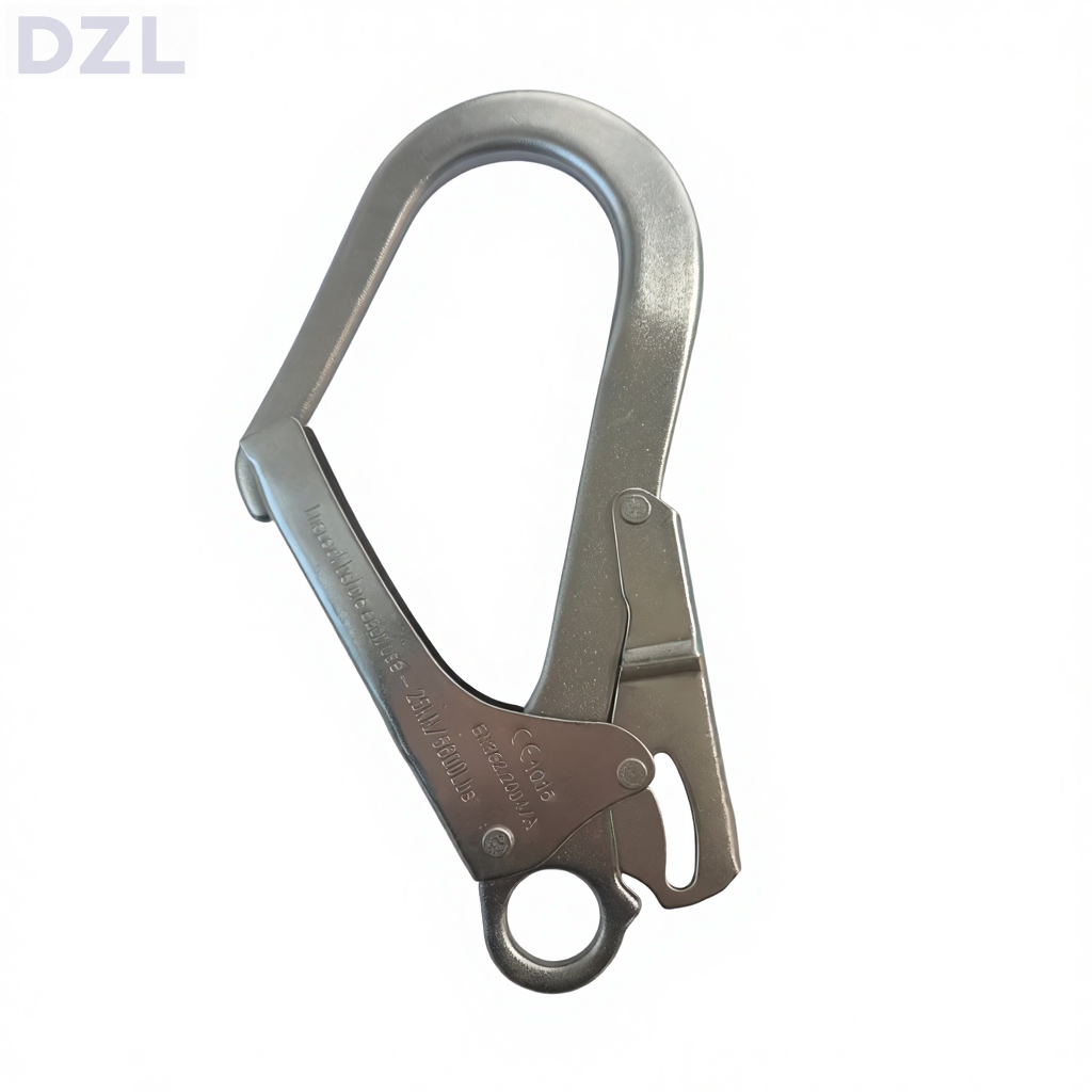 Scaffold hook carabiner is an essencial hardware of full body harness, designed for fall protection systems, safety harnesses,